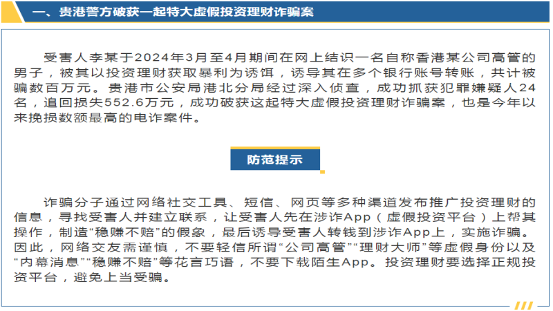 7月10日,自治區(qū)公安廳召開(kāi)廣西公安機(jī)關(guān)打擊整治電信網(wǎng)絡(luò)新型違法犯罪新聞發(fā)布會(huì),發(fā)布四起典型案例。